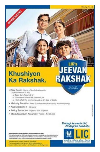 LIC’s Jeevan Rakshak Plan is a participating non-linked plan which offers a combination of protection and savings. This plan provides financial support for the family in case of unfortunate death of the policyholder any time before maturity and a lump sum amount at the time of maturity for the surviving policyholder. This plan also takes care of liquidity needs through its loan facility.