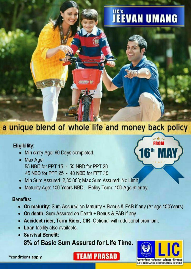 LIC’s Jeevan Umang plan offers a combination of income and protection to your family. This plan provides for annual survival benefits from the end of the premium paying term till maturity and a lump sum payment at the time of maturity or on death of the policyholder during the policy term.